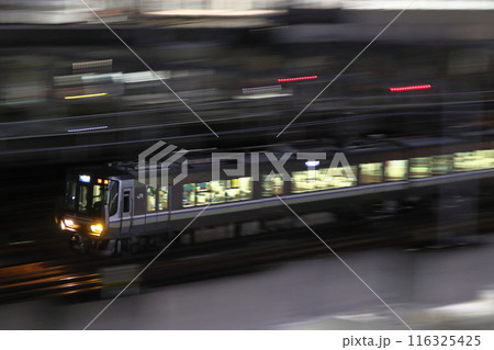 深夜の姫路駅付近を行くJR神戸線223系(快速列車)