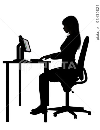 良い姿勢 パソコンをする時の正しい姿勢での椅子の座り方のイラスト