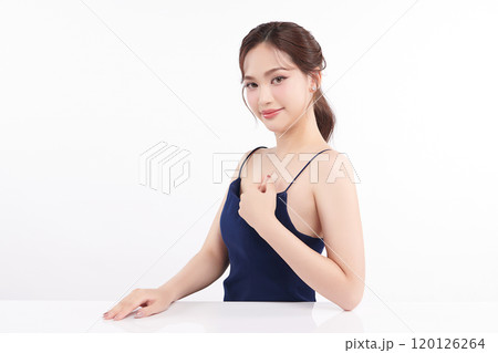 Beautiful young asian woman with clean fresh skin on white background, Face care, Facial treatment, Cosmetology, beauty and spa, Asian women portrait.