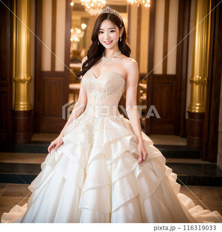 結婚式・花嫁・新婦・ブライダル・ウェディングドレスを着たアジア人女性(Generative AI)