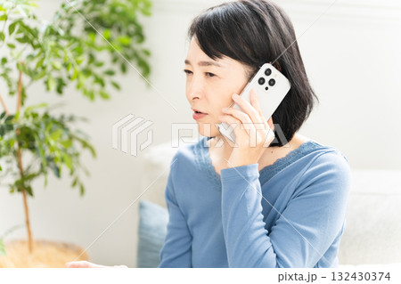スマートフォンで通話をするミドル女性 ライフスタイルイメージ