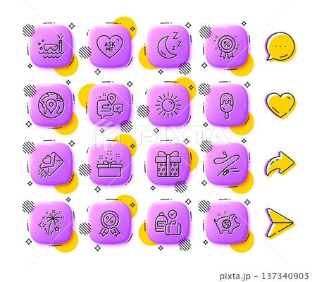 Pin, Discount and Ice cream line icons. App 3d buttons. Social media comment, share, like icons. Pack of Love letter, Scuba diving, Ask me icon. Vector