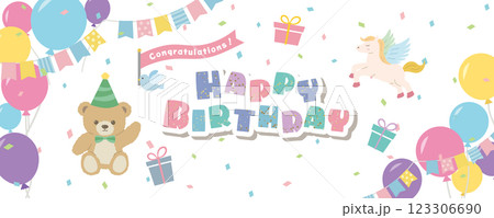Happy Birthday 風船とくまちゃん(フルHD 16:9サイズ)