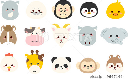 かわいい動物のイラストセット 顔 正面 ベクター素材