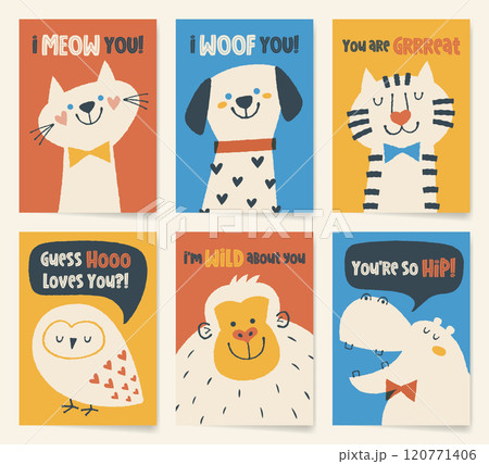 かわいい動物キャラクターの、バレンタインデーグリーティングカードセット