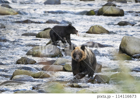 【北海道_ヒグマ】冬眠に備え狩猟をする親子ヒグマ 知床 10月