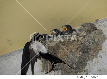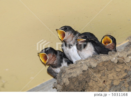 ツバメの巣 大きく口を開けるツバメのヒナ