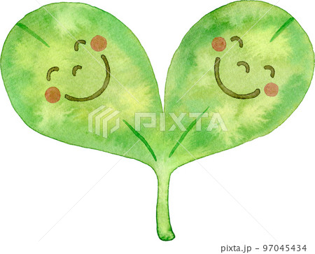 仲良しな笑顔の双葉の水彩イラスト