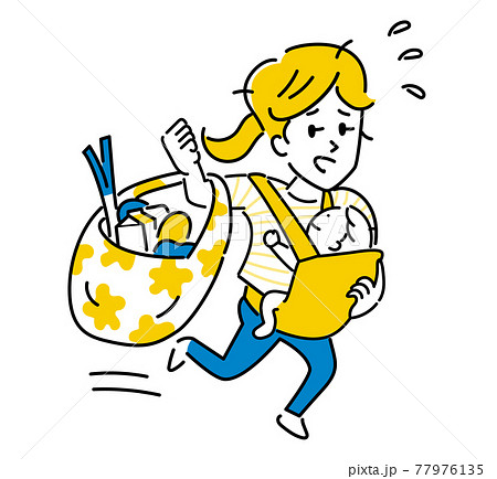 赤ちゃんを抱っこしながら買い物するパワフルお母さんのイラスト素材