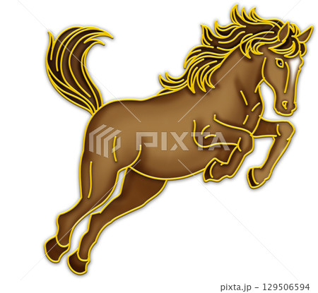 馬のイラスト_午年_ウマ年_午年の年賀状_ジャンプする茶色い馬のイラスト_右向き