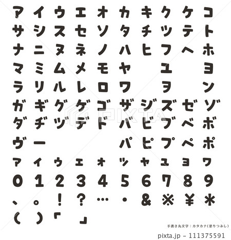 手書き丸文字・カタカナ(白塗り・太フチ)