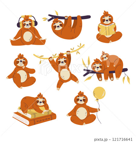 Funny Sloth Animal Character Do Different Activity Vector Set