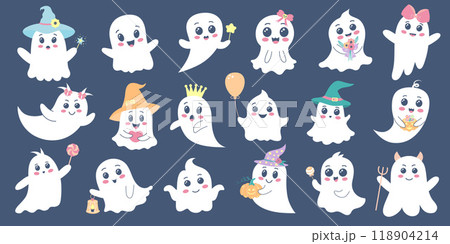 Cute ghost set. Halloween baby characters. Magic scary spirits. Vector cartoon illustration