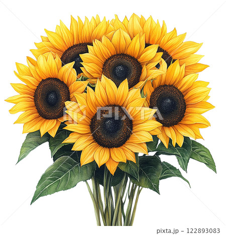 A vibrant bouquet of sunflowers bringing brightness to any space. Watercolor clipart cartoon.