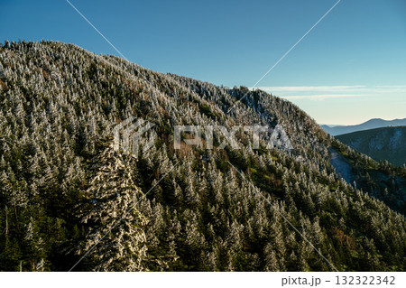 雪化粧の木々と青空