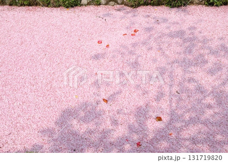 桜の花びらが敷き詰められた道