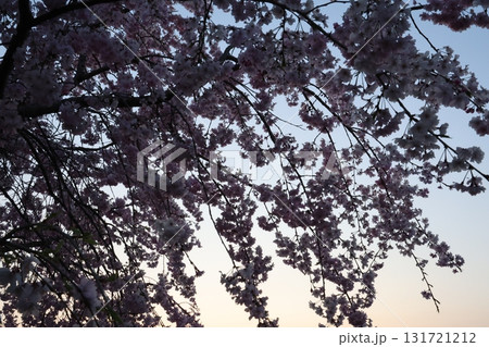 夕日に染まる桜