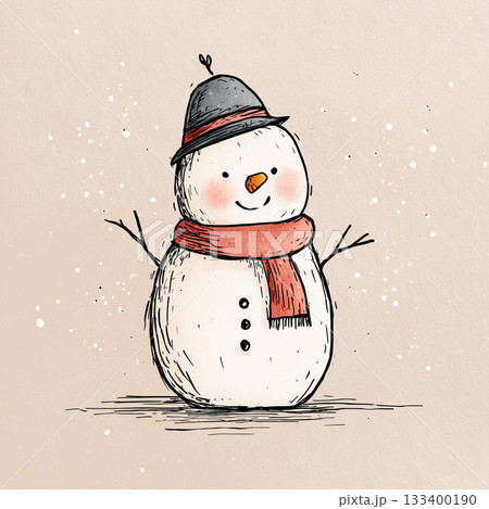 手描き風のスノーマン|冬のやさしさを感じる温もりある雪だるまイラスト