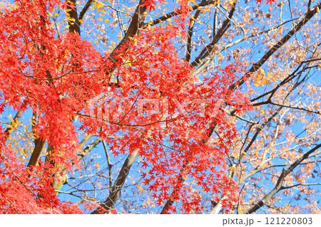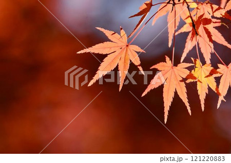 【紅葉イメージ】紅葉した葉のアップと広場