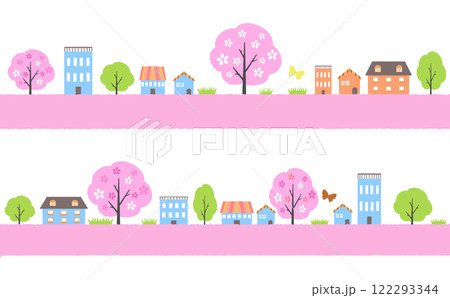 春の街並みのライン飾り 横長 カラフル