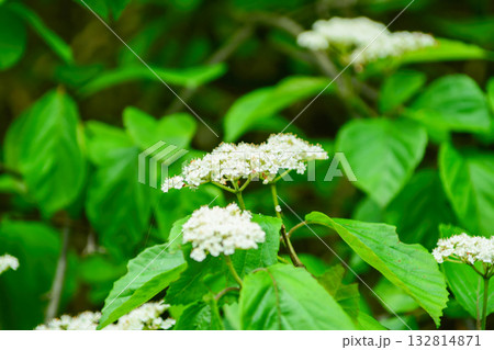 Viburnum wrightii, Wrights viburnum with red and black berries and serrated leaves, photographed in Korea.