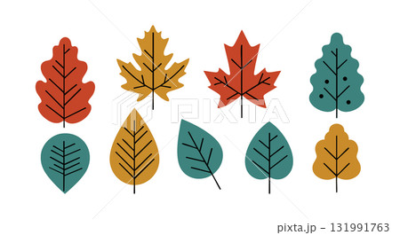 Colorful stylized autumn leaves vector set in orange yellow and teal tones for seasonal design