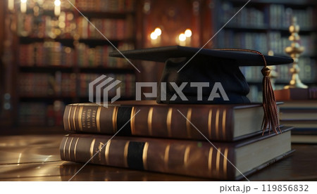 Celebrating Knowledge: Graduation Cap and Books in a Warm Setting