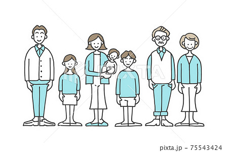 仲良しなファミリー 家族3世代イラスト_ターコイズブルードット