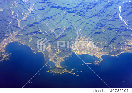 紀伊半島、熊野川河口近くの三輪崎(三重県新宮市) 空撮