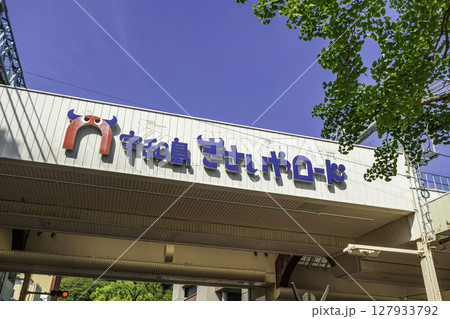 愛媛県宇和島市の史跡宇和島城跡 アーケード商店街に設置された牛鬼の顔