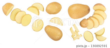 Young potato isolated on white background. Harvest new. Top view. Flat lay, Set or collection