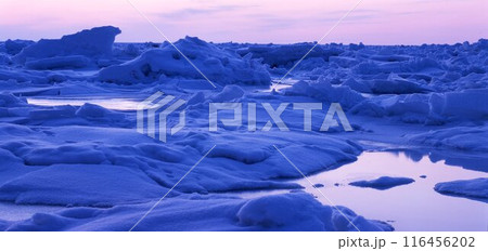 北海道温根別オホーツク氷原夕景