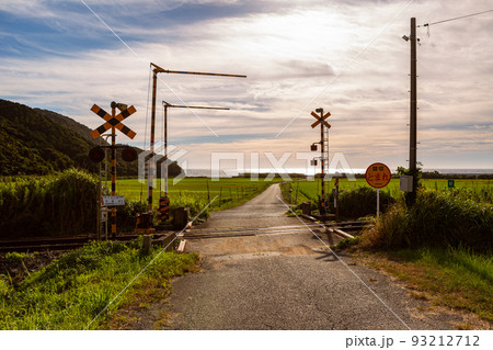 山陰本線本郷踏切と水田の風景 山口県下関市豊浦町