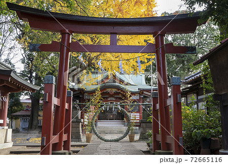 東京都杉並区永福)永福稲荷神社の第2鳥居と年越の祓と銀杏の紅葉