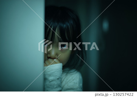恐怖におびえる少女のクローズアップ