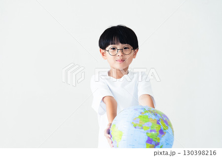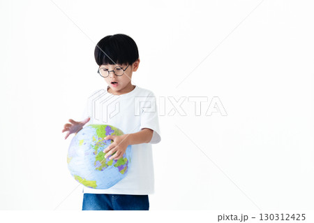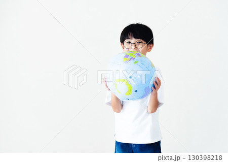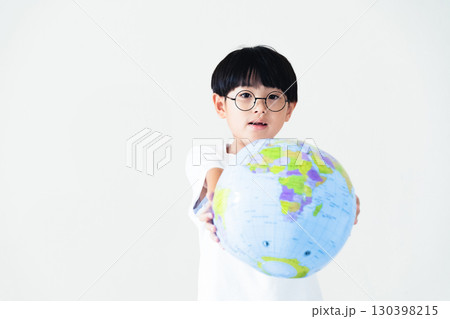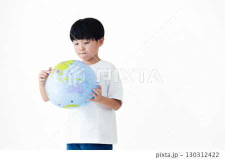 地球儀ボールを持つ男の子
