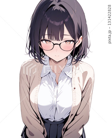 少し落ち込んだ眼鏡の女性のイラスト