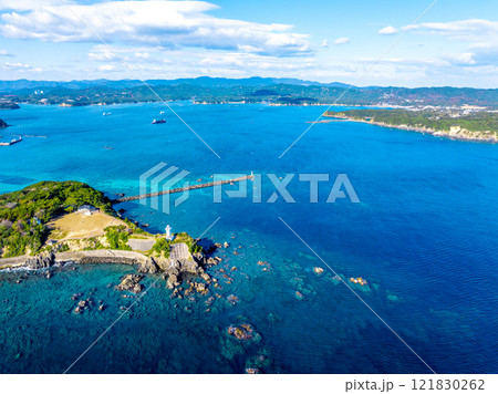 安乗埼(あのりざき)灯台がある安乗岬園地付近の風景 的矢湾を臨む 三重県志摩市阿児町