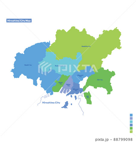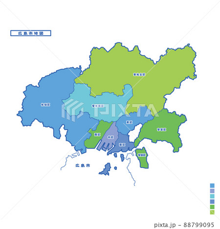 広島市行政区・広島市地図 雨の日カラーで色分けしてみた