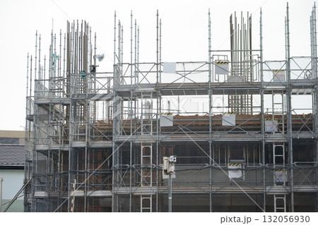 躯体工事中のマンション建設現場 (枠組足場) イメージ