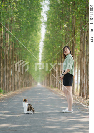 Pet owner and specialist discuss wellness options for a feline companion in a welcoming pet spa environment