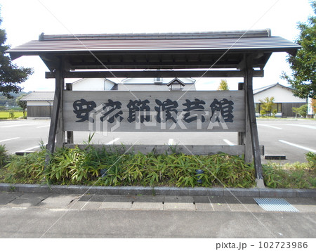 安来節演芸館の駐車場入り口の看板 島根県安来市