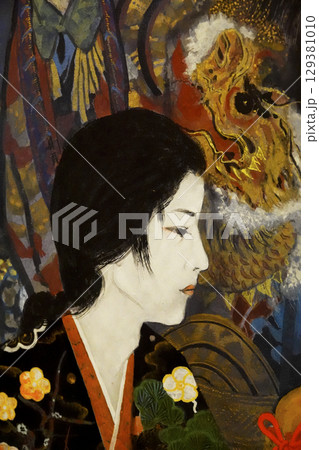 安芸高田神楽資料館に展示されている女性と龍の絵
