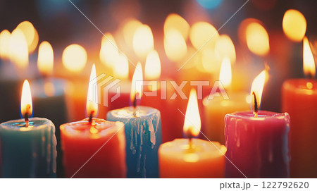 無数のキャンドルが揺らめく中で広がる暗闇の背景フレーム