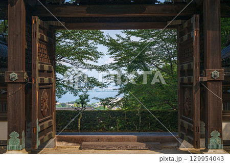 滋賀大津 西教寺 唐門から琵琶湖を望む