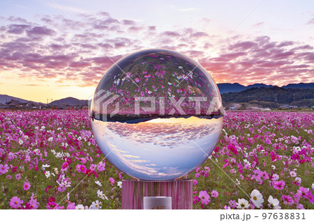 【藤原宮跡のコスモス (朝焼け) (水晶玉)】 奈良県橿原市高殿町