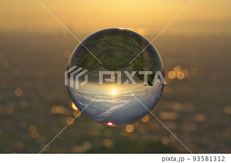 【大阪平野を一望 (夕景) (水晶玉)】 撮影場所:水呑地蔵尊 大阪府八尾市大字神立