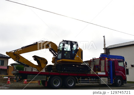 油圧ショベルの輸送作業