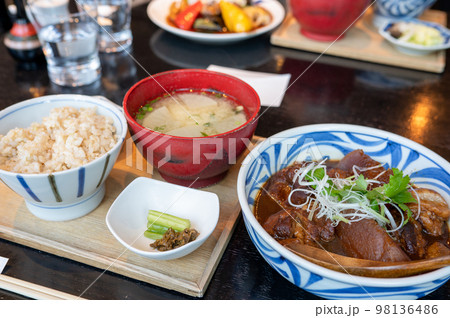 牛すじ煮込み定食 麦ごはん 味噌汁