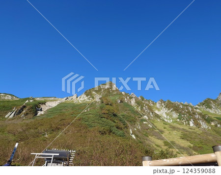 長野県の秋の駒ヶ岳の山小屋(天狗荘)付近から中岳方面を眺める